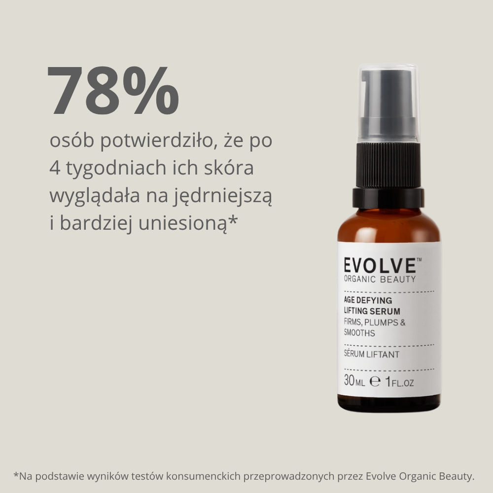 Evolve Organic Beauty – Age Defying Lifting Serum – to intensywnie liftingujące serum do twarzy i szyi, które redukuje widoczność zmarszczek i przywraca skórze młodzieńczy wygląd.