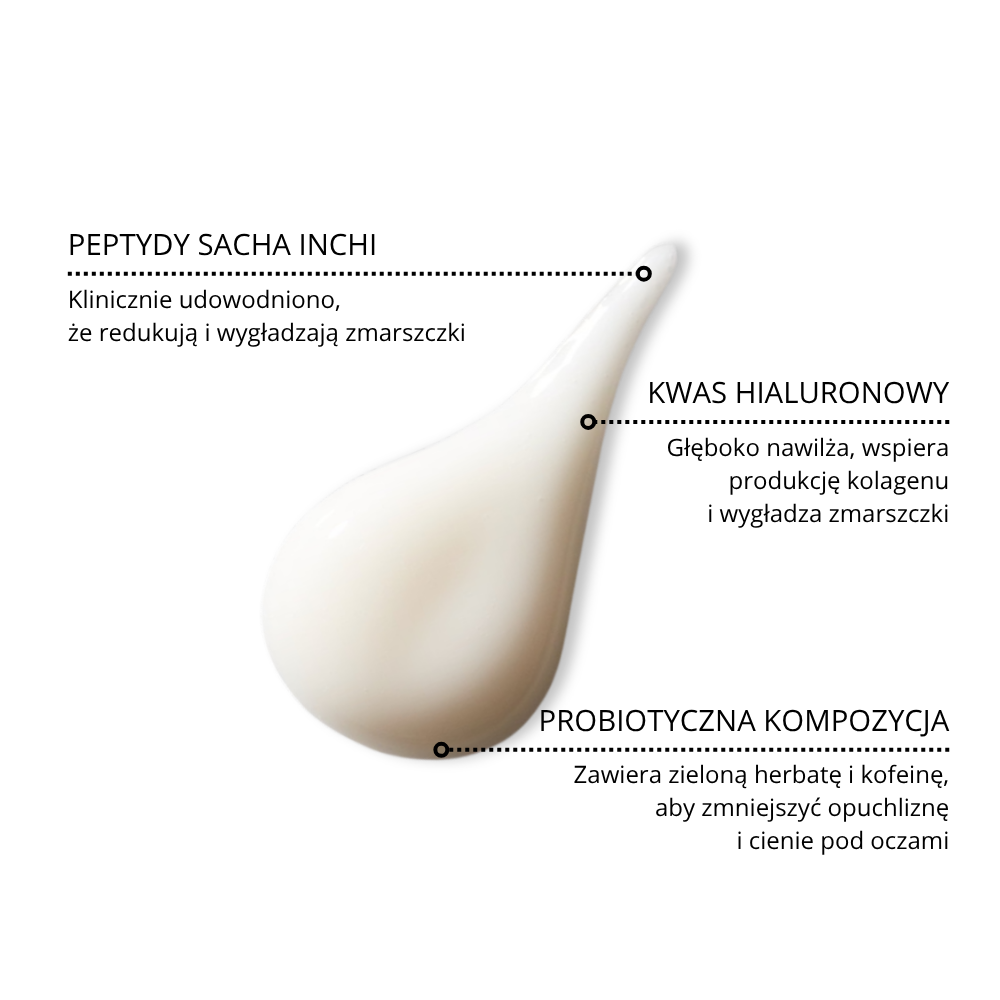 SPOSÓB UŻYCIA Nanieś jedną pompkę produktu na okolice oczu i ust, a następnie delikatnie wmasuj. Używaj po oczyszczeniu skóry, zarówno rano, jak i wieczorem, dla najlepszych efektów.