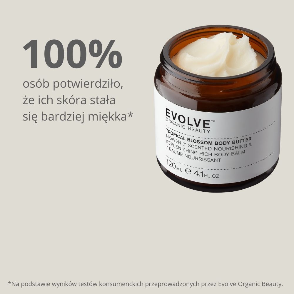 Evolve Organic Beauty – Tropical Blossom Body Butter – odkryj sekret gładkiej i nawilżonej skóry! To luksusowe masło do ciała z organicznym masłem shea i olejem kokosowym intensywnie odżywia i regeneruje skórę, pozostawiając ją miękką i gładką.