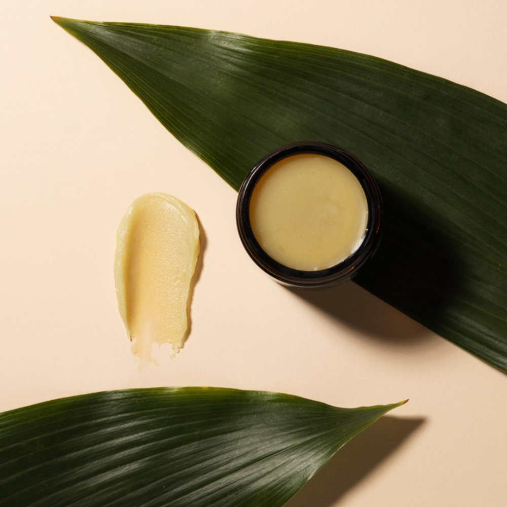Organic MCT Coconut Oil, Botanical Infusions (Organically-Grown Kava Root, Organic St. John's Wort, Organic Ginger), Organic Beeswax, Organic Castor Oil, Full-Spectrum Extract from USDA Organic-Certified Regeneratively-Grown Hemp (0.3% THC or less), Organic Essential Oils (Lavender, Peppermint, Eucalyptus, Ginger).