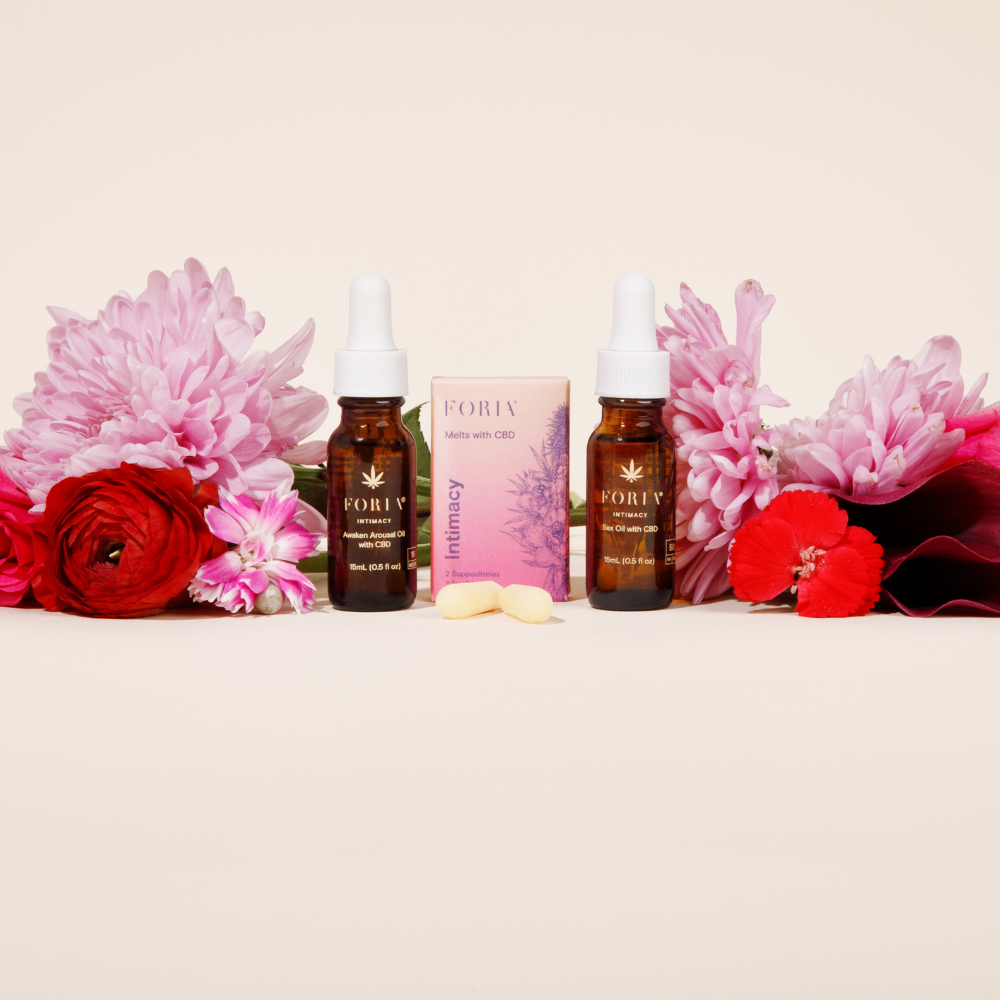 Intimacy Awaken Arousal Oil with CBD Organic MCT Coconut Oil, USDA Organic-Certified Broad-Spectrum Hemp Extract (THC ≤ .3%), Botanical Infusions (Organically-Grown Kava Root, Organic Cinnamon, Organic Ginger, Organic Vanilla); Organic Essential Oils (Cardamom, Peppermint, Cacao Absolute). Intimacy Sex Oil with CBD Organic MCT Coconut Oil, Broad-spectrum extract from USDA organic-certified, regeneratively-grown USA hemp (400mg Active CBD), free of THC. Intimacy Melts with CBD Organic-certified fair trade cocoa butter 50mg broad-spectrum extract from USDA organic-certified, regeneratively-grown USA hemp (CBD)
