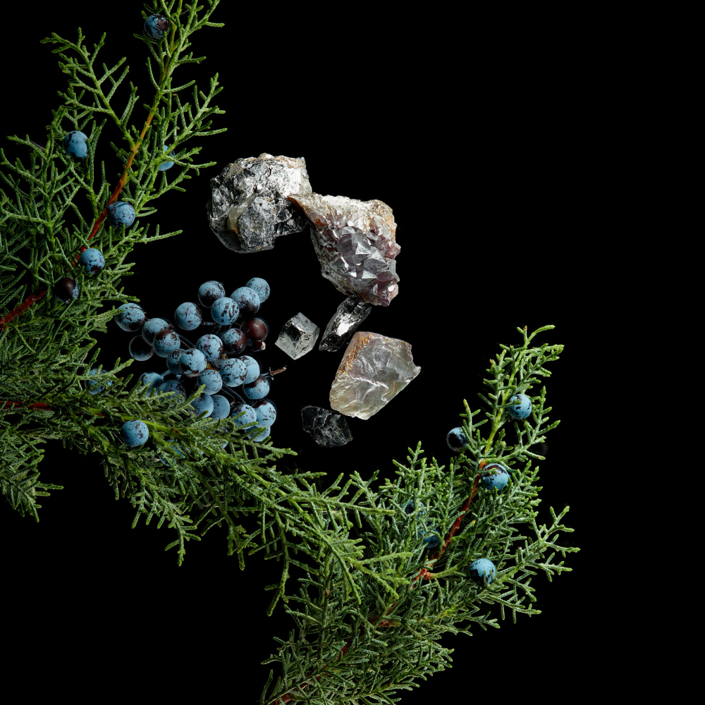 Magnesium Chloride, Sodium Chloride, Amethyst, Styrax Benzoin, Andropogon Zizanioides (Vetiver) Oil, Cedrus Atlantic Bark (Cedarwood) Oil, Nardostachys Jatamansi Oil, Juniperus Communis (Juniper Berry) Fruit Oil, Liquid Amber Orientalis Balsam Extract, Petitgrain Bigarde Oil, Rose Damascena (Rose) Flower Oil, Tocopherol (Vitamin E), Helianthus Annuus (Sunflower) Seed Oil, Cinnamyl Alcohol, Geraniol, Limonene, Linalool